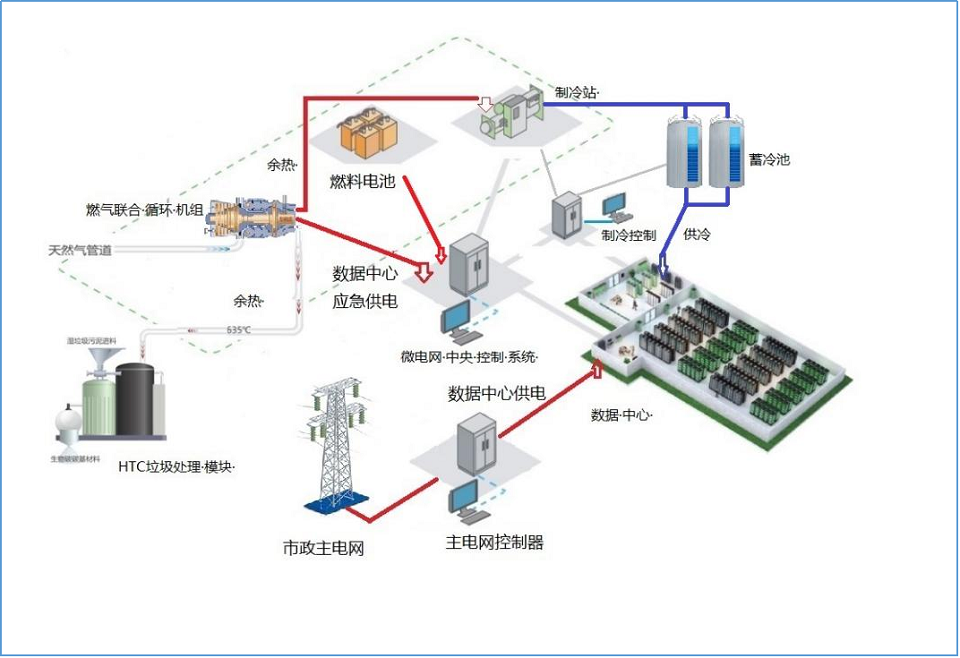 取代柴油機備份電源,大大降低冗余供電設(shè)施的規(guī)模,并充分利用已建成的冗余供電設(shè)施為數(shù)據(jù)中心的制冷模塊供電和供熱,降低數(shù)據(jù)中心的運營成本;